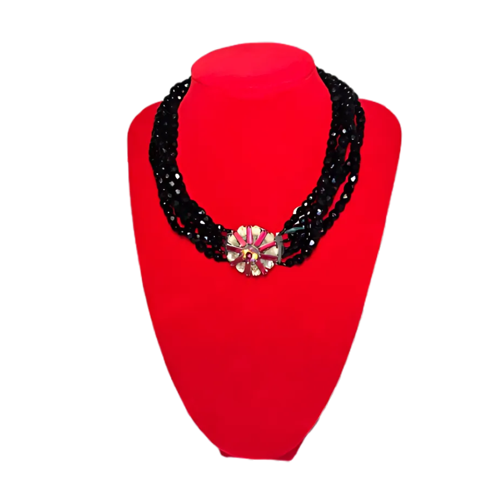girocollo onice 4 fili chiusura rosetta pietre