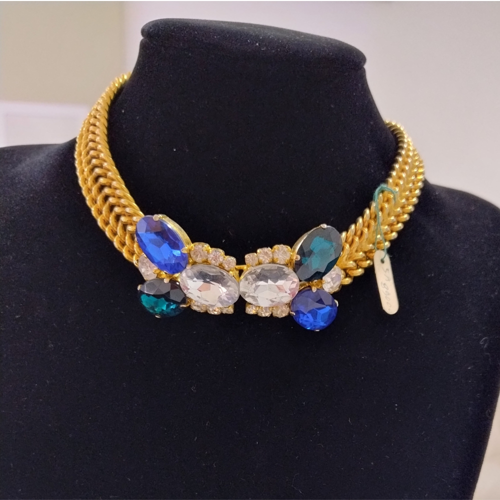 Realizzato in materiali robusti e autentici, questo articolo vintage è una combinazione di grandi pietre dure e metallo lavorato a mano, arricchita da finiture patinate che esaltano il suo carattere storico. questo incredibile girocollo riflette la bellezza naturale delle materie prime utilizzate e l’attenzione artigianale alla qualità. Sostenibile e resistente, è un investimento che continuerà a brillare nel tempo.